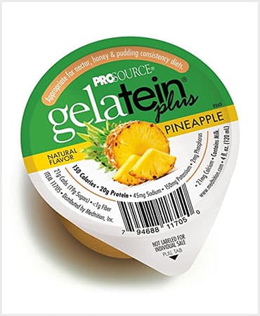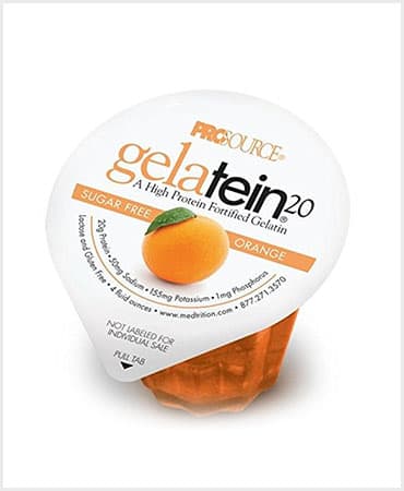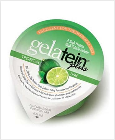 Es un postre de gelatina listo para servir con 220 calorías y 20 gramos de proteínas para pacientes que requieren algo de calorías adicional.